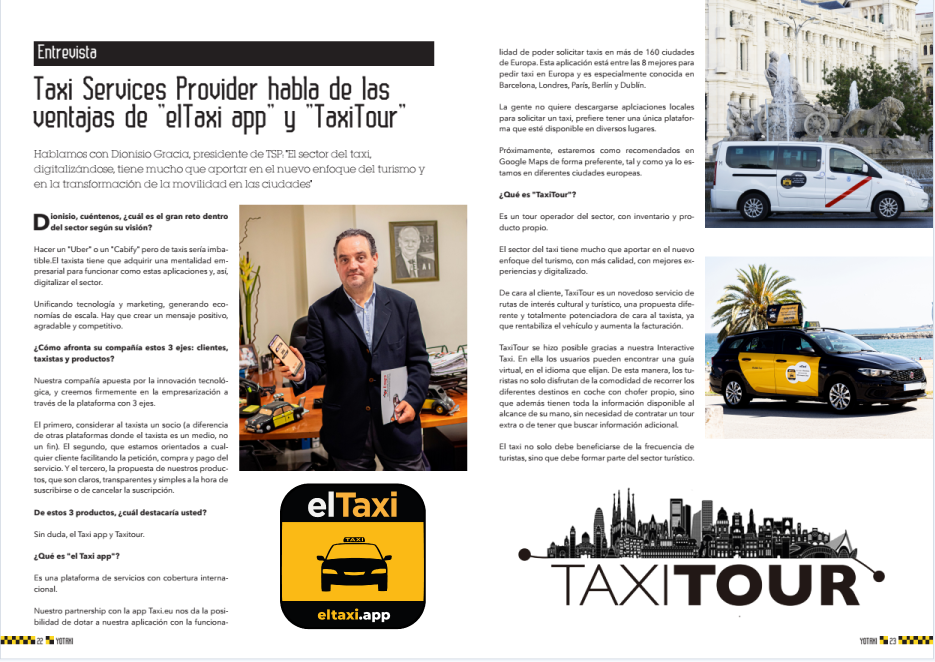 El Taxi del siglo XXI es el nuevo concepto de empresarialización del taxi que se extiende en el universo de TSP, una oportunidad única de ser un nuevo motor para la transformación de la movilidad, mediante la digitalización del taxi, innovando en productos de cara al pasajero como ninguna compañía ha hecho antes.